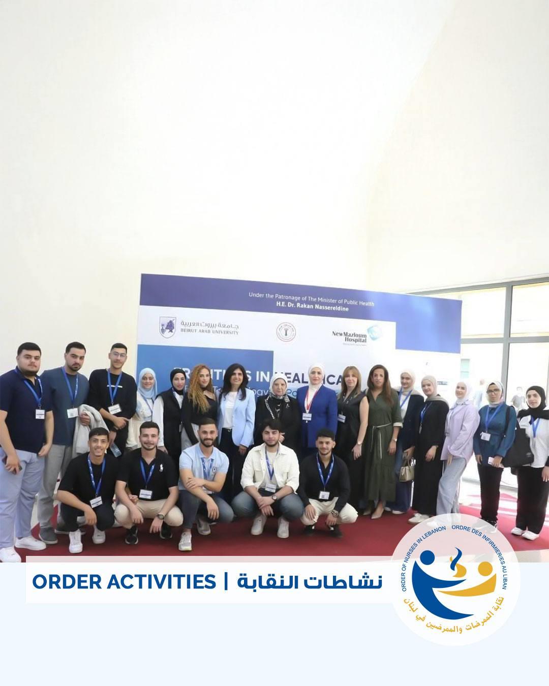 شاركت نقابة الممرضات والممرضين في لبنان بمؤتمر بعنوان "آفاق الرعاية الصحية من التكنولوجيا إلى رعاية المريض" من تنظيم مستشفى مظلوم وجامعة بيروت العربية في طرابلس، وذلك في حرم الجامعة في الميناء، برعاية وزير الصحة العامة الدكتور ركان ناصر الدين.