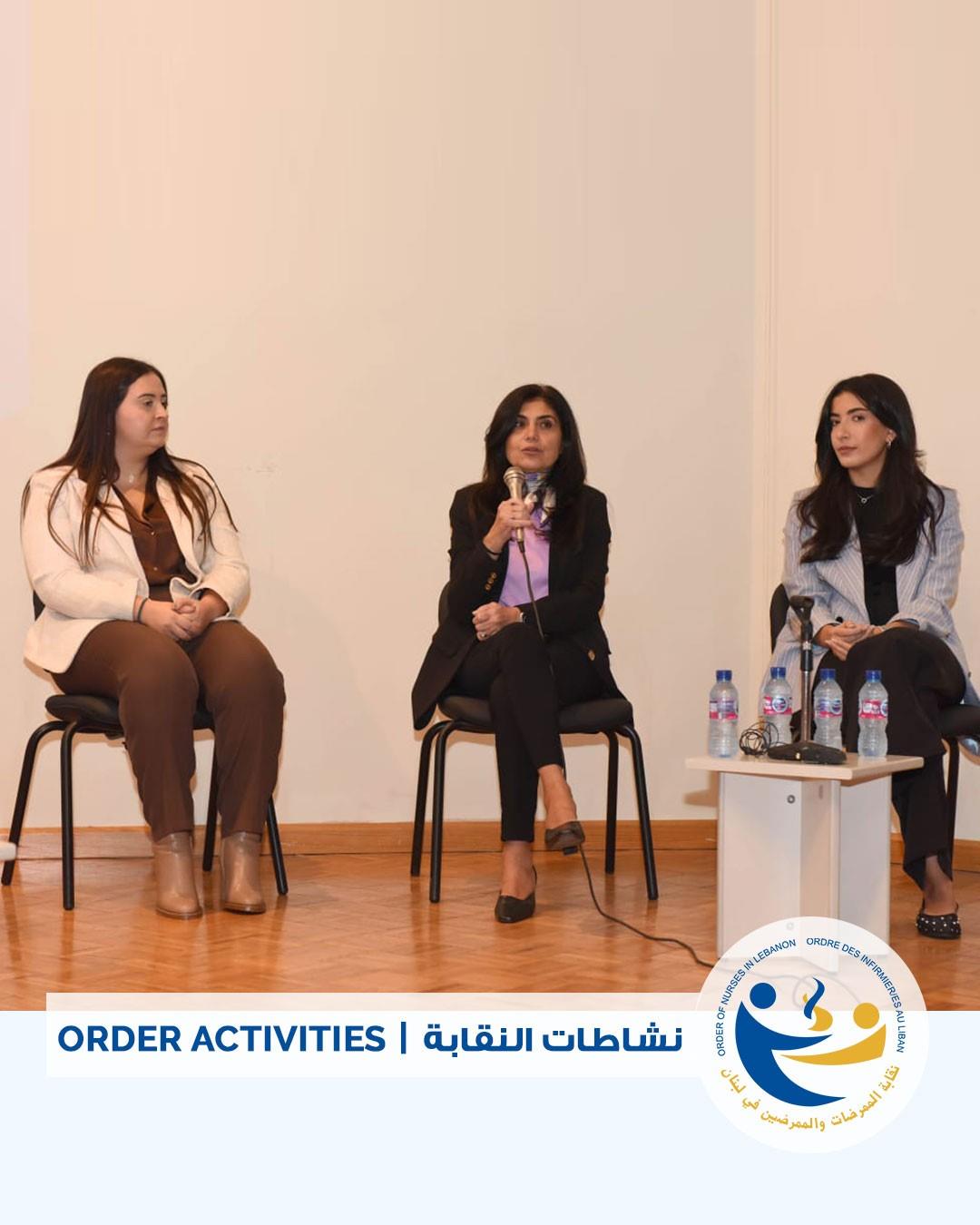 وشاركت النقيبة السيدة عبير الكردي علامه بجلسة نقاش وشددت على دور الممرضات والممرضين في المساهمة في خلق بيئة عمل أكثر صحةً ودعماً للأشخاص المصابين بالسكري في مختلف مراكز العمل وأضافت أنه يقتضي تعديل القوانين لتصبح الشركات والمؤسسات ملزمة بإستخدام ممرض/ة لضمان استمرارية الرعاية الصحية للموظفين. وختم اللقاء بورشة عمل للممرضات والممرضين العاملين في المدارس حول السكري ومضاعفاته وأحدث التقنيات للتعايش معه ومعالجته.