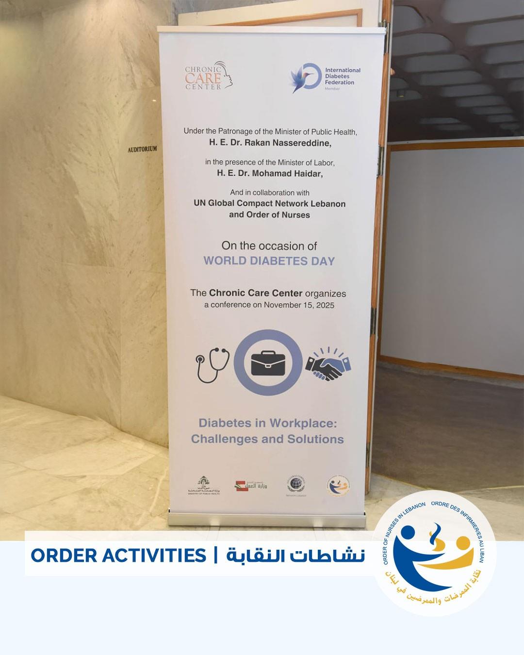بمناسبة اليوم العالمي للسكري نظمّ مركز الرعاية الدائمة مؤتمراً تحت عنوان "السكري في أماكن العمل" بالتعاون مع نقابة الممرضات والممرضين و UN Global Compact Network Lebanon.