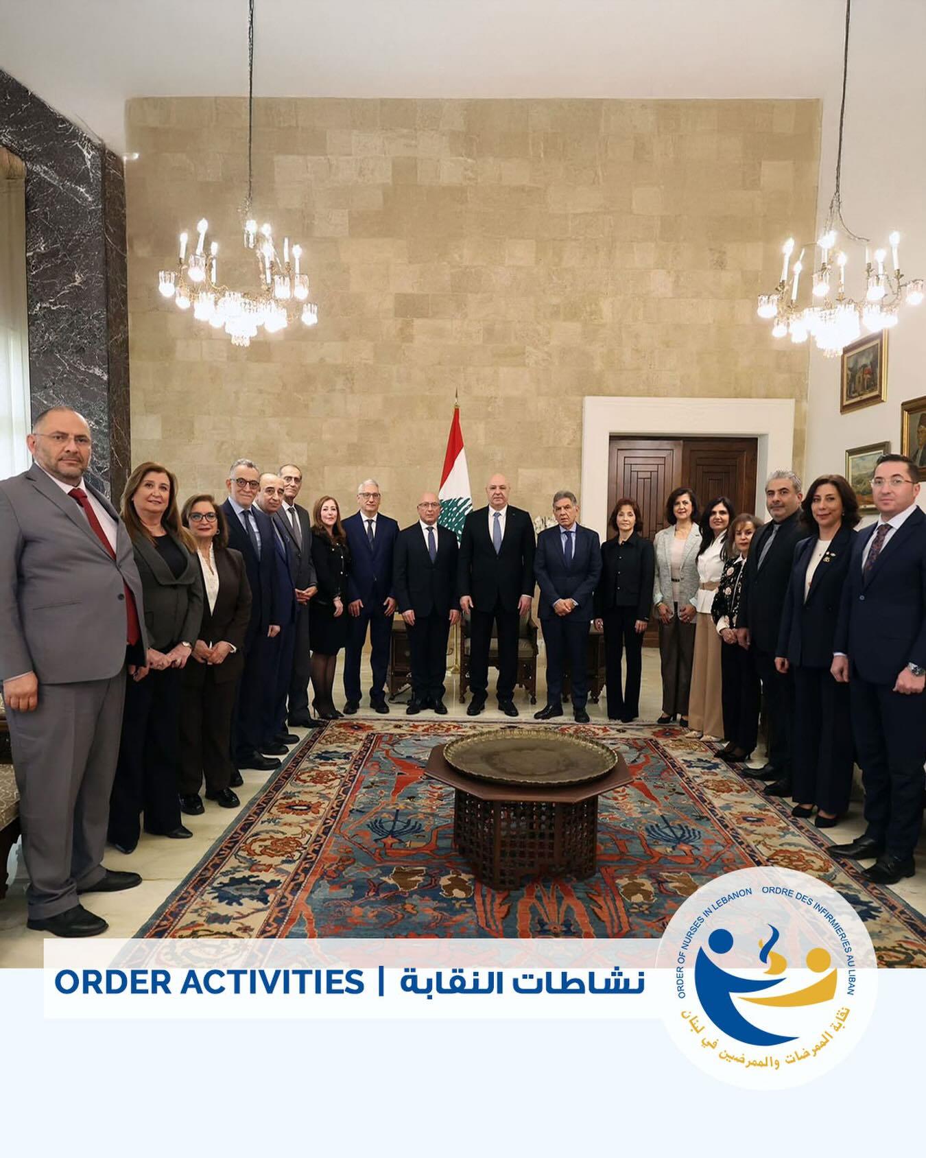 ضمن وفدٍ من نقباء المهن الصحية، شاركت نقيبة الممرضات والممرضين في لبنان في زيارة فخامة رئيس الجمهورية العماد جوزف عون في قصر بعبدا، حيث جرى عرض ملف انتحال الصفة في القطاع الصحي والمخاطر الجسيمة التي يشكّلها على صحة المرضى وسلامة المجتمع، ولا سيّما في مجال التمريض والرعاية الصحية المنزلية.