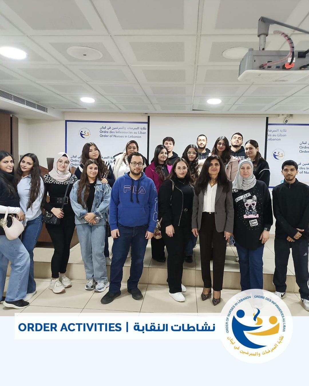 ضمن سلسلة لقاءات تهدف إلى مواكبة ممرضات وممرضي المستقبل وتعزيز الشراكة معهم إستقبلت النقيبة عبير الكردي علامه، طلاب التمريض من جامعة الأنطونية والقديس يوسف والمقاصد في مقر النقابة وإفتراضياً طلاب الجامعة الأميركية في بيروت وشكّل اللقاء فرصة للتعريف بتاريخ النقابة وقوانينها وأنظمتها وتوجهاتها الاستراتيجية، إضافة إلى تسليط الضوء على أهمية دور الجيل الجديد في العمل النقابي وتعزيز مكانة المهنة. كما تضمّن اللقاء عرضاً من قبل المستشار القانوني الأستاذ روجيه ابي راشد لأبرز مواد قانون العمل اللبناني وخصوصية تطبيقها بمهنة التمريض، بما يدعم وعي الطلاب المهني ويعزز انتماءهم للنقابة ولمهنتهم الإنسانية